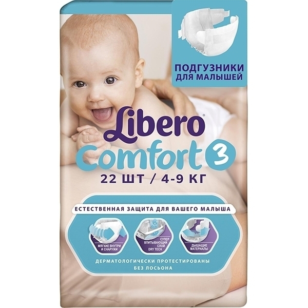 Детские подгузники Libero Comfort 3 Midi, 4-9 кг, 22 штуки