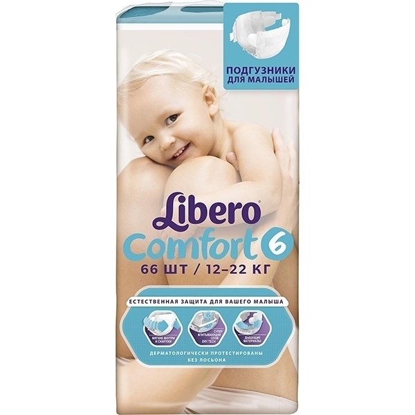 Детские подгузники Libero Comfort 6 Extra Large, 12-22 кг, 66 штук