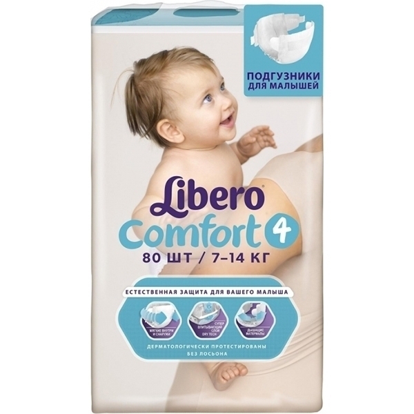 Детские подгузники Libero Comfort Maxi 4, 7-14 кг, 80 штук