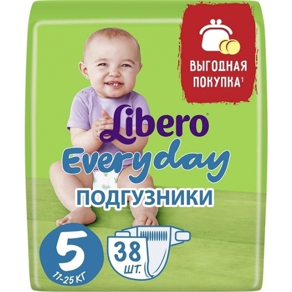 Детские подгузники Libero Everyday с ромашкой 5 Extra Large, 11-25 кг, 38 штук