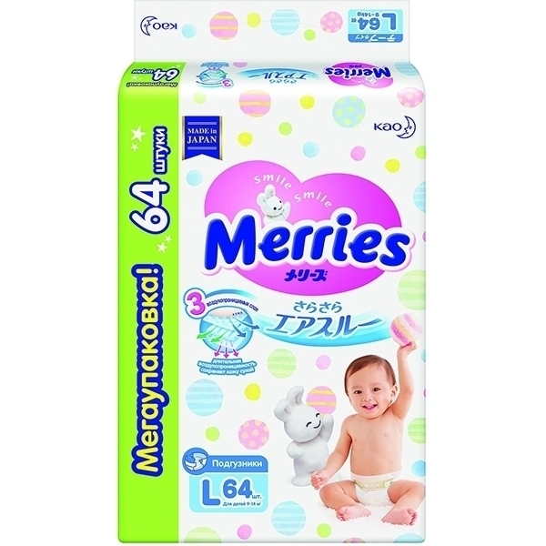 При выборе подгузников у родителей в приоритете — натуральность материалов, их способность «дышать», комфорт, ощущение свободы при движении. Легкие детские подгузники Merries L предназначены для активных, растущих малышей. Они оснащены безопасными регулируемыми застежками, которые позволяют точно подогнать подгузник под нужный размер или ослабить поясок после кормления. Эластичная вставка на спинке и боковые манжеты надежно защищают от протекания во время сна.