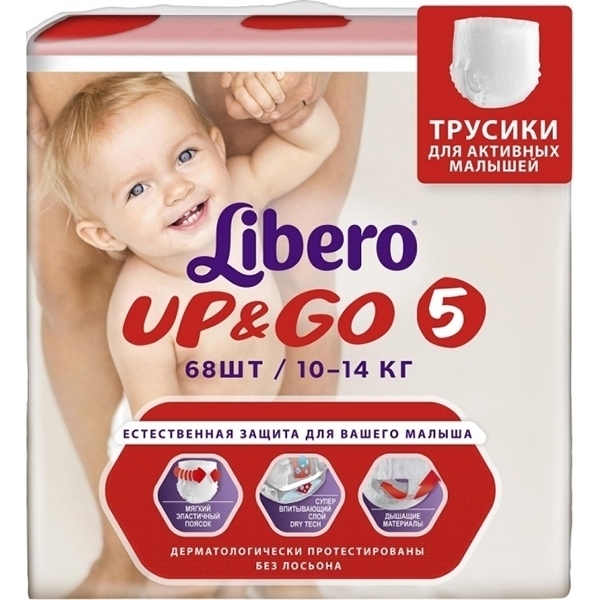 Детские трусики Libero Up&Go 5 Maxi plus, 10-14 кг, 68 штук
