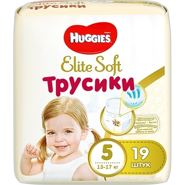 Детские трусики-подгузники Huggies Elite Soft 5, 12-17 кг, 19 штук