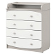Комод “Классик” состоит из четырех вместительных ящиков на бесшумных шариковых направляющих с удобным доступом к вещам ребенка. Корпус комода выполнен из качественной ЛДСП, фасад – из МДФ. У этой модели комода нет колес.