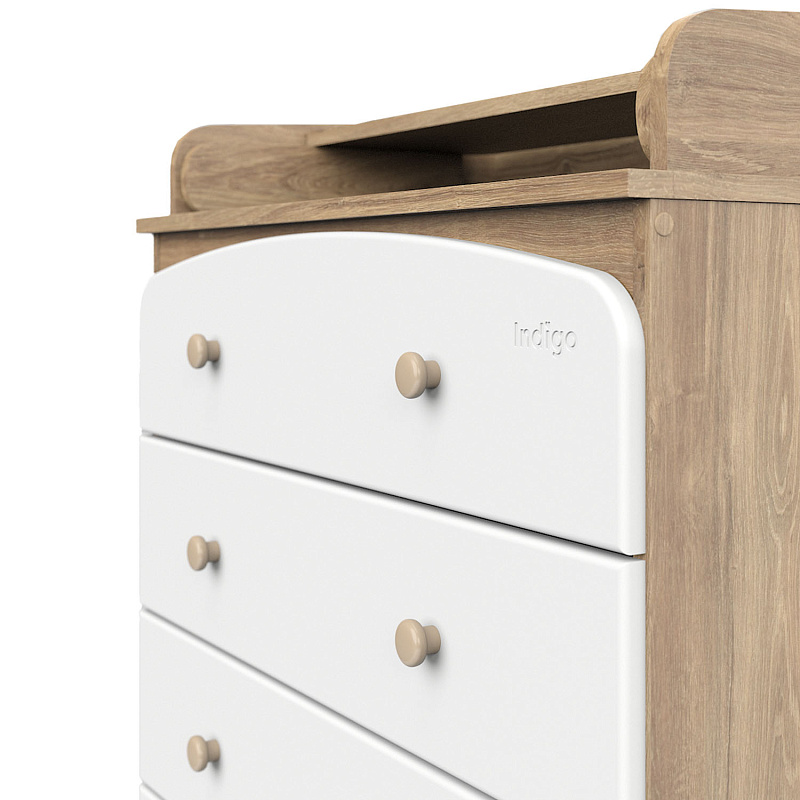 Indigo Classic (Индиго Классик) – классический детский комод без колес с пеленальной доской и четырьмя выдвижными ящиками со стильными ручками