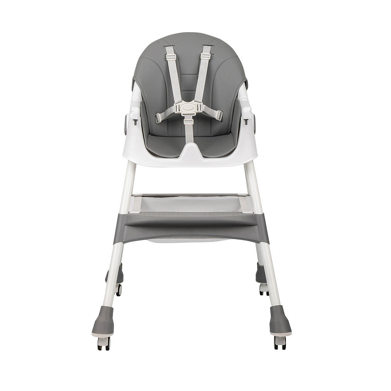 У стульчика есть поворотные колеса с индивидуальными стопорами на каждом колесе для легкости перемещения и одновременно устойчивости. Надежную фиксацию ребенка обеспечивают пятиточечные ремни безопасности.