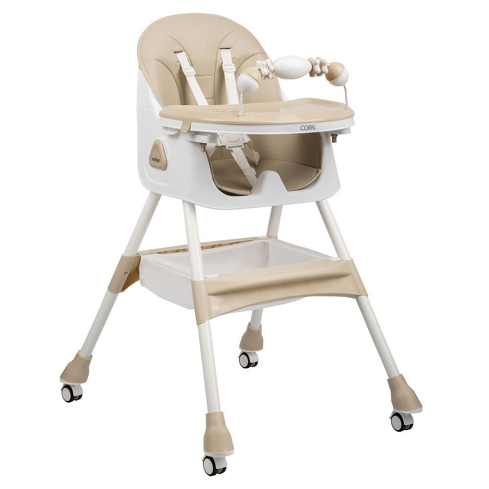 Многофункциональный стул-трансформер “Корн” от Indigo создан для комфорта и безопасности ребенка. Предназначен для малыша с полугода до 3 лет и выдерживает вес до 15 кг.