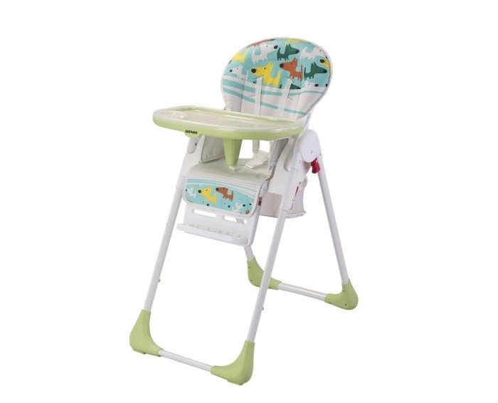 Чтобы ребенок был защищен от падения, предусмотрены 5-точечные ремни безопасности и съемная перемычка против соскальзывания. Чехол эргономичный, съемный. Сиденье регулируется по высоте в трех положениях, также регулируется подножка. Стульчик легко складывается, компактен в сложенном виде. Под сиденьем оборудована корзина для игрушек или предметов гигиены.