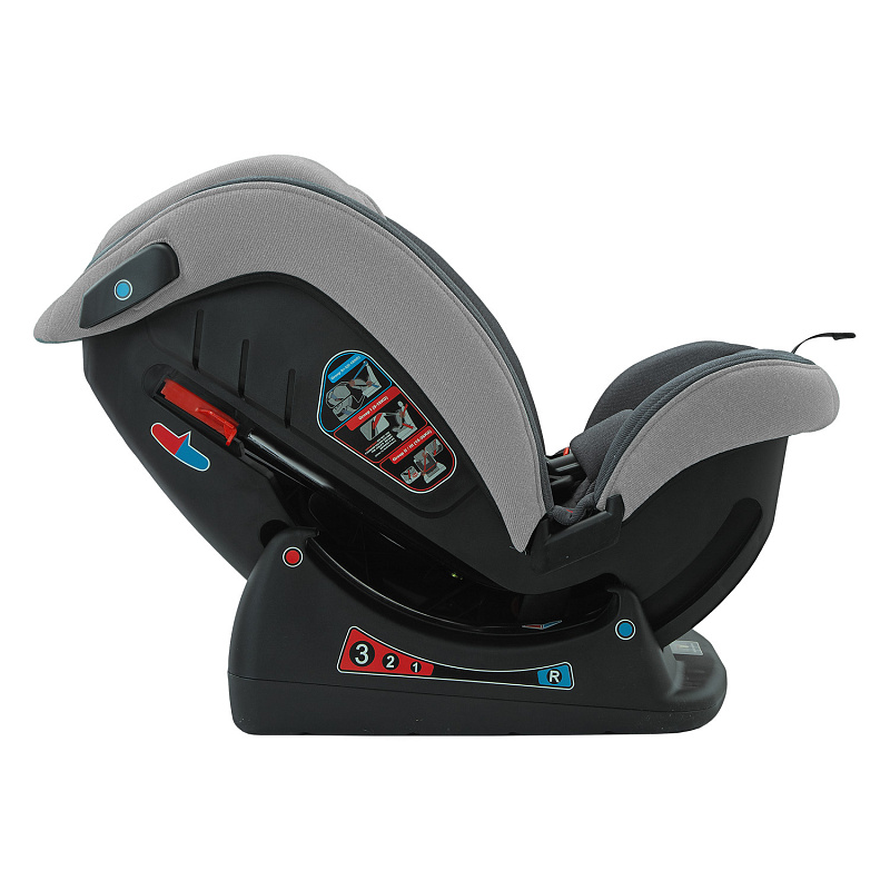 Автомобильное кресло относится к группе 0/1/2/3 и прослужит ребенку с рождения до 12 лет. Кресло просто устанавливается в машине и крепится штатным ремнем. Пока ребенку не исполнится 1,5 года, ребенок фиксируется в самом кресле с помощью 5-точечных ремней безопасности, после – с помощью того же штатного автомобильного ремня.