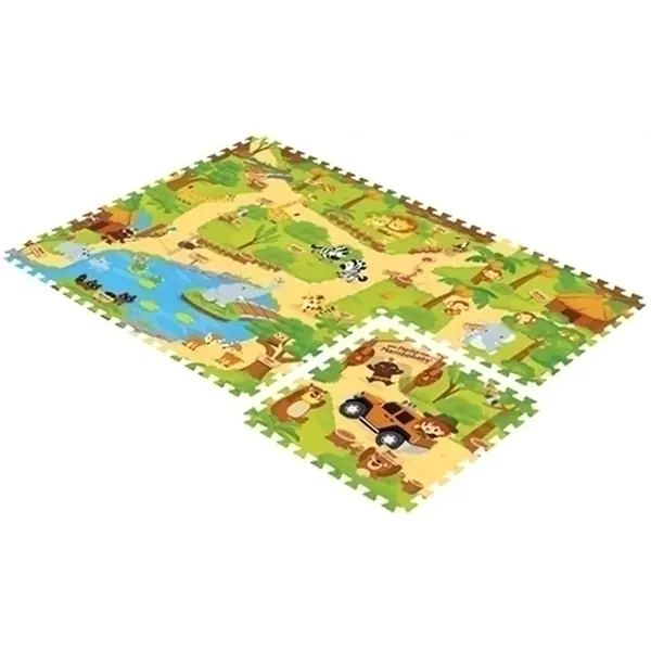 Из двенадцати красочных фрагментов малыш сможет собрать яркое изображение, которое познакомит его с забавными животными. Кроха с большим интересом будет рассматривать картинки и познавать этот новый мир. Развивающий коврик-пазл Mambobaby Зоопарк сделан из легкого и эластичного полипропилена. Этот материал обладает теплоизоляционными свойствами, он не промокает, не имеет запаха и токсинов.