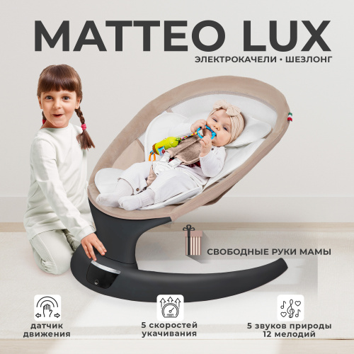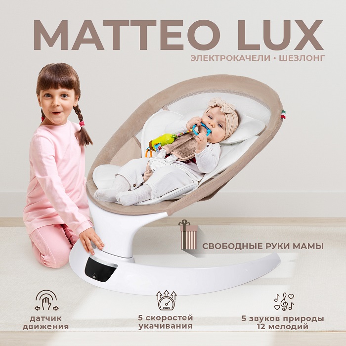 Электрокачели Sweet Baby Matteo Lux — обновленная модель 2025 года, созданная для комфорта новорожденных и удобства родителей. Эта многофункциональная модель помогает укачивать малыша, развлекать его или оповещать о пробуждении благодаря встроенному датчику движения. Плавное и бесшумное боковое качание создает успокаивающую атмосферу, а встроенные мелодии и звуки природы способствуют расслаблению ребенка. Качели выполнены из высококачественных материалов, обеспечивающих максимальный уют и безопасность.
