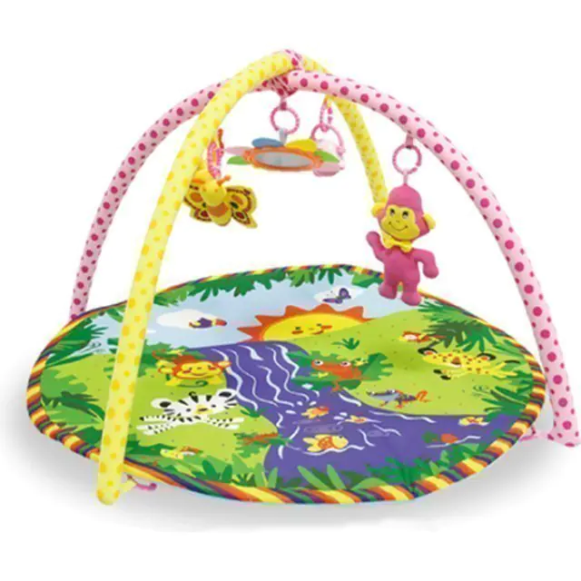 Мягкая, приятная на ощупь, поверхность декорирована интересными рисунками, выполненными яркими сочными красками. Удобно устроившись на игровом коврике Lorelli Toys (Лорелли Тойс) Райский остров, малыш будет с интересом рассматривать изображения, знакомиться с новыми формами и предметами. Для развлечения карапуза на дугах предусмотрены подвесные игрушки – погремушка, грызунок, мягкая игрушка, зеркальце. Купить по разумной цене игровой коврик Lorelli Toys (Лорелли Тойс) Райский остров родители могут в интернет-магазине koliaski-krovatki.ru. Изделие легко разбирается для компактного хранения и транспортировки.