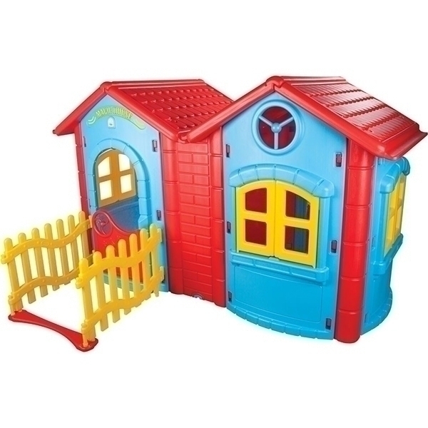Ваш малыш мечтает о своей личной территории, где он сможет делать все, что хочется? Тогда ему понравится игровой домик Pilsan Magic Double. В этом уютном местечке ребенок сможет проводить все свое свободное время, занимаясь разными делами: рисованием, лепкой, чтением, общением с друзьями и увлекательными играми. При этом у родителей появится больше времени на выполнение своих дел, так как карапуз не будет часто их отвлекать. Эта модель состоит из 2-х домиков, соединенных между собой. Такое решение особенно подойдет для семьи с двумя детьми: во время игр они смогут стать добрыми соседями, которые помогают друг дружке, ходят в гости и устраивают совместные праздники. Малыши смогут играть не только внутри домика, но и во дворе с яркой оградкой. Здесь они смогут организовывать пикники и выгуливать домашних питомцев.