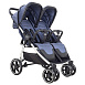 Пара сдвоенных передних колес оснащены поворотным механизмом, поэтому одновременно выполняют 2 функции: обеспечивают маневренность и устойчивость на дороге. Большая багажная корзина вмещает вещи двух детей. Педальный тормоз мгновенно блокирует движение задних колес, а после использования коляска быстро складывается «книжкой».