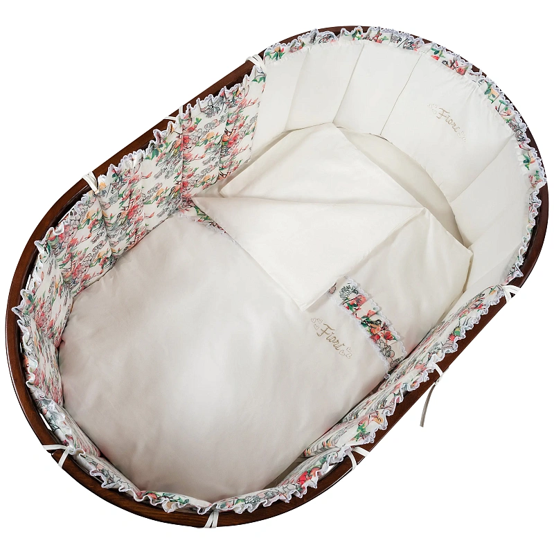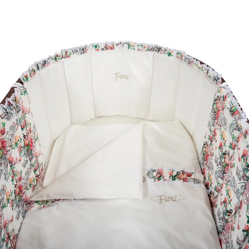 Комплект постели Nuovita Fiori для кроватки-трансформера от российского производителя Makkaroni Kids сшит из сатина, обладающего красивым шелковым блеском и роскошного жаккарда с бархатистой и гладкой текстурами. Главным украшением Nuovita Fiori стал красочный принт, который радует своей яркостью и оригинальностью. Дополнительными декорирующими деталями набора являются кружевные рюши и великолепная шелковая вышивка. Комплект постели в детскую кроватку Нуовита Фиори станет прекрасным убранством для спального места вашего малыша и подарит ему самые красочные сновидения.