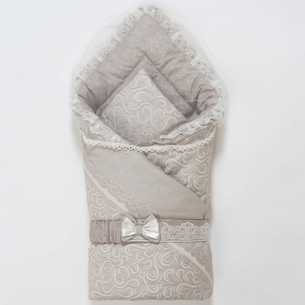 Авторский рисунок на ткани, изысканные банты и милое кружево превращают обычное одеяло в нарядный конверт для выписки новорожденного Триумф. Тонкая вуаль укрывает личико маленького ангелочка от посторонних глаз. А натуральная ткань — сатин, заботится о комфорте малыша.