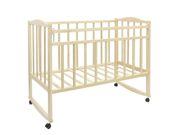 Эта модель сделана из березы — дерева, оно считается лучшим материалом для производства детской мебели. Основание выполнено из отдельных прочных реек, которые обеспечивают правильное положение спины малыша во время сна и полную вентиляцию спального места. Оно устанавливается в двух положениях. На верхнем уровне укладывают новорожденного младенца (подходит до 4-х месяцев жизни), а на нижнем — ребенка, который начинает самостоятельно садиться. Планка передней стенки плавно опускается на 20 см, обеспечивая родителям легкий доступ к карапузу.