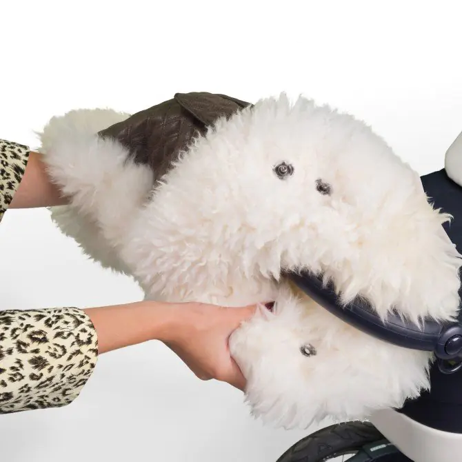 Муфта для рук на коляску Esspero Magda – удивительно красивая новинка 2014 года! Шагреневая стеганая эко-кожа, мягкая и прочная, прекрасно защищает от промокания. Длинноворсный овечий мех смотрится легким и воздушным, при этом отлично сохраняет тепло ваших рук. Для большего удобства в верхней части муфты для рук на коляску Эсперо Магда сделан кармашек, вмещающий ключи, телефон и другие необходимые мелочи.
