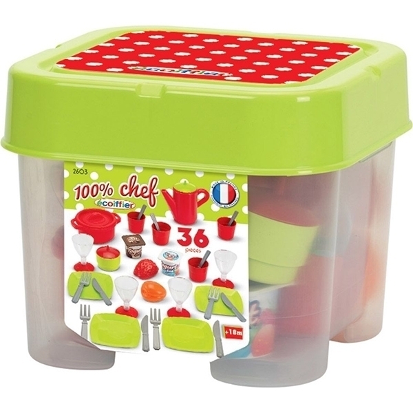 Набор посудки Ecoiffier 100% Chef 2603 в коробке, 36 предметов