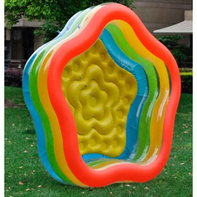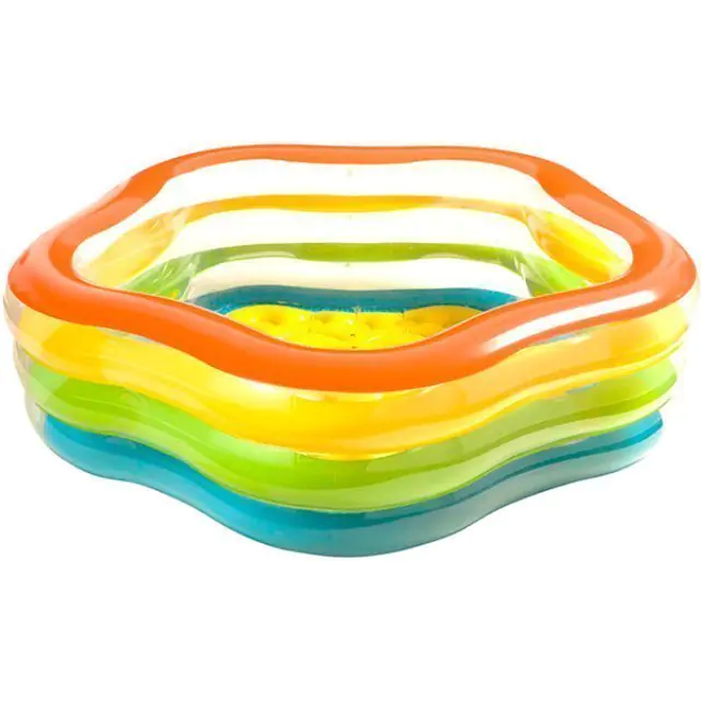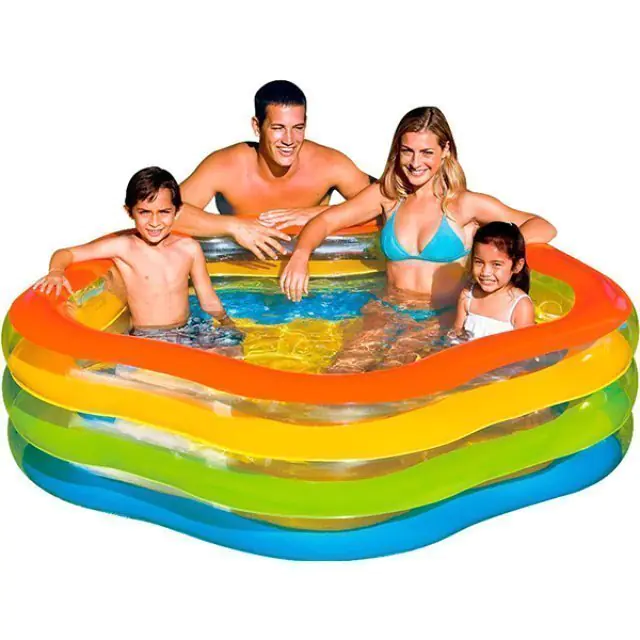 Если вы хотите, чтобы в вашем загородном доме царила атмосфера свежести в летний зной, обратите внимание на эту модель вместительностью почти в полтонны. Яркий надувной бассейн Intex (Интекс) Звезда Радуга с56495 имеет прочную конструкцию, позволяющую выдерживать нескольких человек. Изделие состоит из четырех вертикальных раздельных секций, которые легко надуваются через двойные клапаны. Купить надувной бассейн Intex (Интекс) Звезда Радуга с56495 можно по заманчивой цене в интернет-магазине koliaski-krovatki.ru. Использовать его очень просто: надуваете изделие в начале сезона и периодически меняете воду с помощью специального сливного клапана.