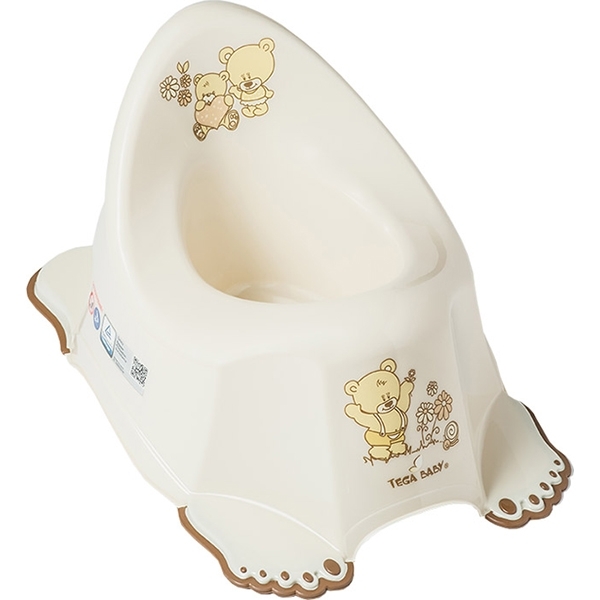 Чтобы горшок не скользил и не ставил под угрозу здоровье карапуза, в нем есть прорезиненные детали на дне. Поэтому можете использовать нескользящий детский горшок Tega Baby Мишка без опаски с тех пор, как только малыш начнет проявлять к нему интерес.