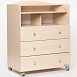 Помимо закрытых ящиков большой вместимости комод дополнен открытыми полочками, что придает ему современный вид и делает конструкцию более изящной.