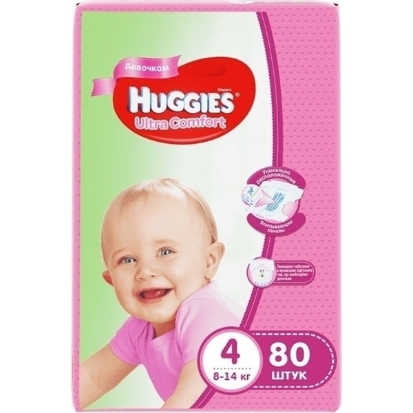 Подгузники для девочек Huggies Ultra Comfort 4, 8-14 кг, 80 штук