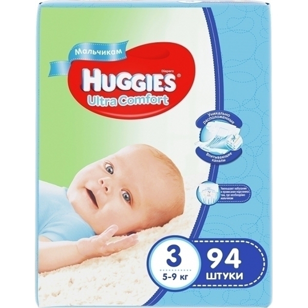 Подгузники для мальчиков Huggies Ultra Comfort 3, 5-9 кг, 94 штуки