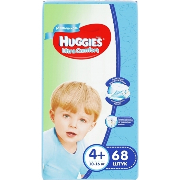 Подгузники для мальчиков Huggies Ultra Comfort 4+, 10-16 кг, 68 штук