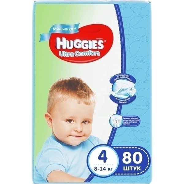 Подгузники для мальчиков Huggies Ultra Comfort 4, 8-14 кг, 80 штук
