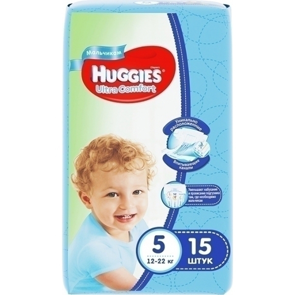 Подгузники для мальчиков Huggies Ultra Comfort 5, 12-22 кг, 15 штук