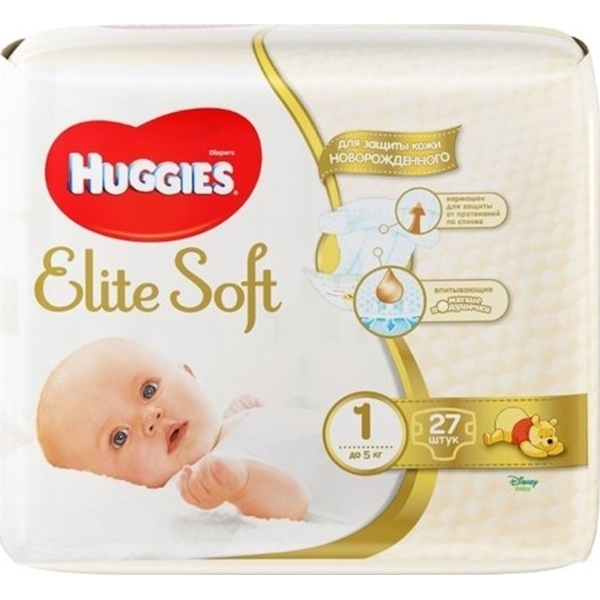 Подгузники для новорожденных Huggies Elite Soft 1, до 5 кг, 27 штук