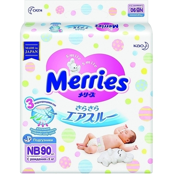 Мягкая ежедневная забота — подгузники для новорожденных Merries NB (Меррис НБ)
