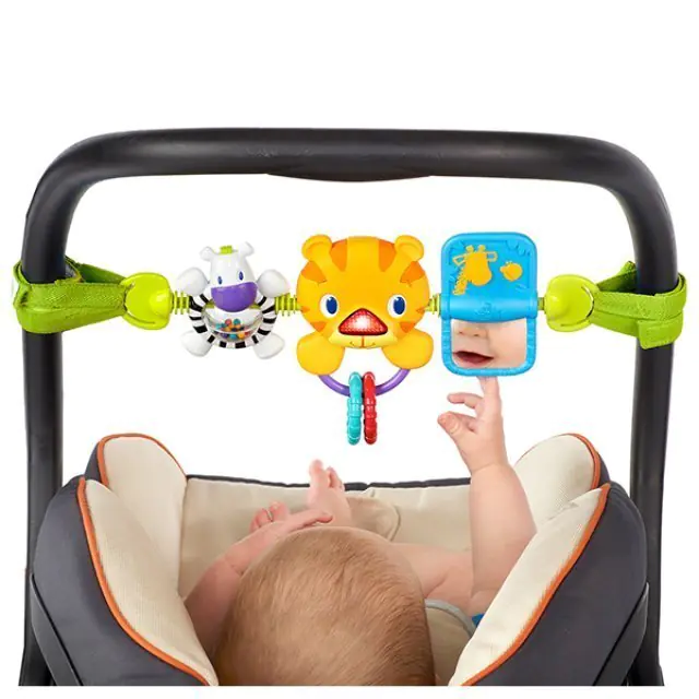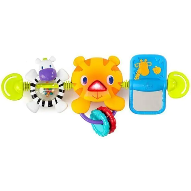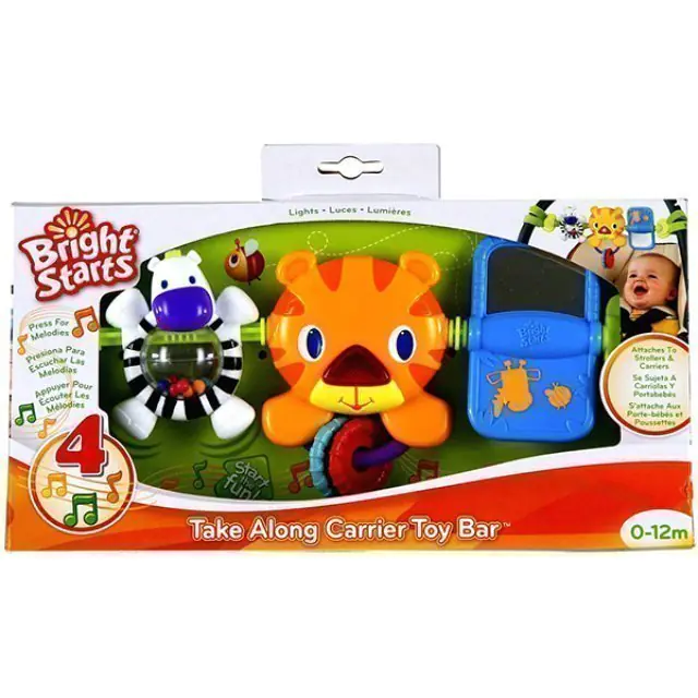 Милый тигренок в компании с зеброй будет развлекать кроху на прогулках и в путешествиях. Развивающая игрушка для коляски Bright Starts (Брайт Стартс) Тигренок 9005 состоит из вращающихся элементов, выполненных из разнофактурных материалов, и крутящегося безопасного зеркальца. Внутри зебры гремят разноцветные шарики. Купить развивающую игрушку для коляски Bright Starts (Брайт Стартс) Тигренок можно по выгодной цене уже сейчас. Она проигрывает четыре веселые мелодии, которые будут поднимать карапузу настроение.