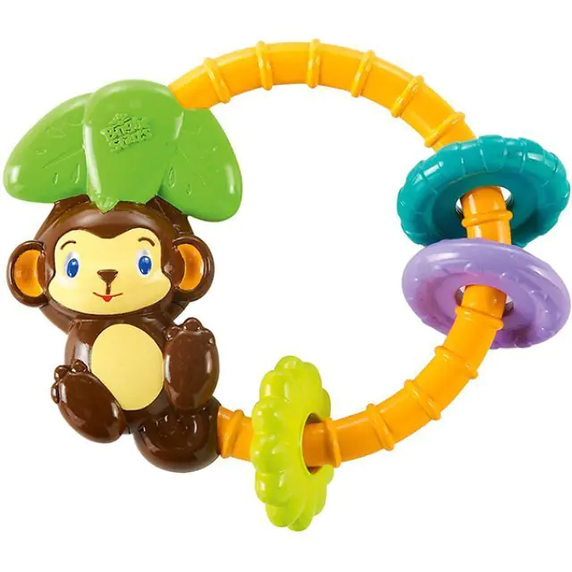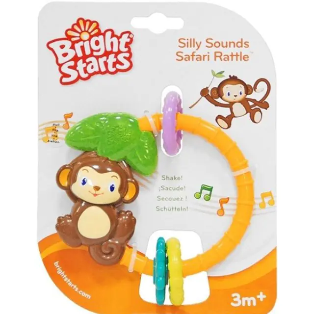 Легкая и удобная по размеру и форме для детских ручек, эта игрушка создана, чтобы веселить маленького ангелочка с первых месяцев его жизни. Если потрясти развивающую игрушку-погремушку Bright Starts (Брайт Стартс) Обезьянка, она начнет проигрывать мелодии и воспроизводить звуки животных и джунглей. Так малыш услышит крик слона, хохот мартышки и другие интересные звуки, которые вызовут на его лице восторженную улыбку. Купить развивающую игрушку-погремушку Bright Starts (Брайт Стартс) Обезьянка можно за выгодную цену в интернет-магазине koliaski-krovatki.ru с доставкой. Для развития осязания изделие оснащено разноцветными вращающимися колечками.