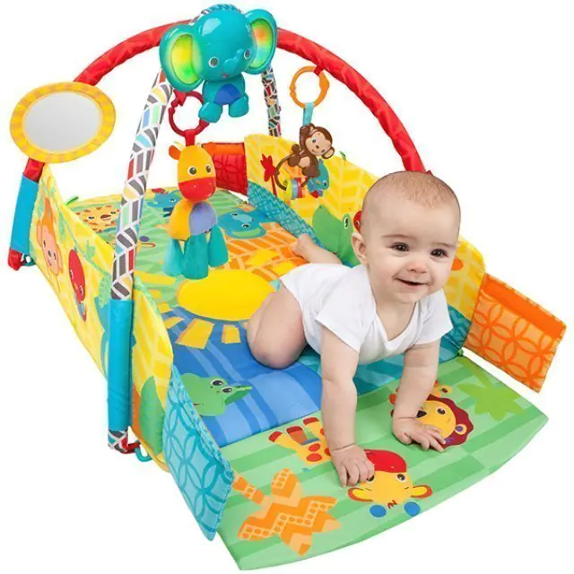 Восемь интересных игрушек и музыка – развивающий коврик Bright Starts (Брайт Стартс) Солнечное Сафари 52157