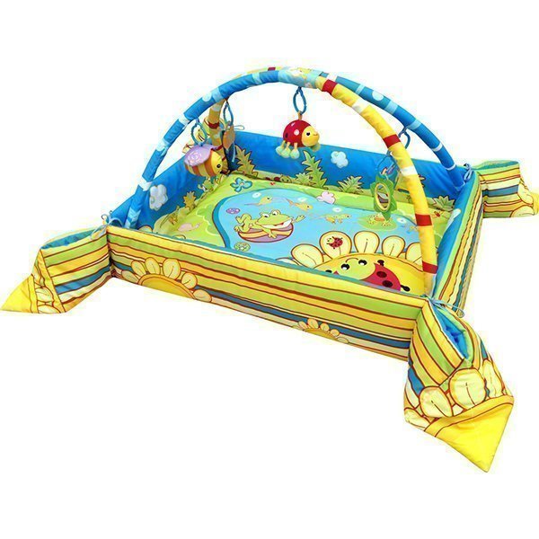 Развивающий коврик LaDiDa Счастливый лягушонок снабжен специальными мягкими бортиками, которые, складываясь, не позволят слишком активному малышу скатиться на пол. Когда кроха подрастет и научится сидеть, борта можно опустить, тем самым расширив игровое пространство для маленького исследователя. LaDiDa Счастливый лягушонок PM20208 оснащен двумя дугами со съемными игрушками. Как только они перестанут интересовать малыша, вы сможете легко их снять и заменить на новых персонажей. Развивающий коврик с раскладными бортами ЛаДиДа Счастливый лягушонок выполнен из мягкой гипоаллергенной ткани, которая легко чистится и не теряет своей яркости в течение длительной эксплуатации.