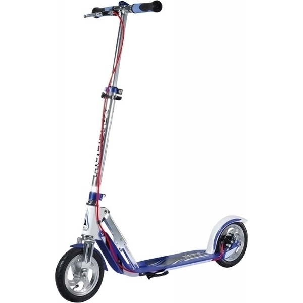 Самокат Hudora Big Wheel Air Dual Brake имеет прочную алюминиевую конструкцию, которая выдерживает вес пользователя 120 кг. При этом его руль поднимается до 105 см, поэтому управлять транспортным средством удобно детям и взрослым людям с ростом 180 см. Еще один плюс модели — улучшенная тормозная система, которая состоит из двух механизмов — ручного и ножного. Благодаря такому решению юные гонщики могут выполнять различные трюки.