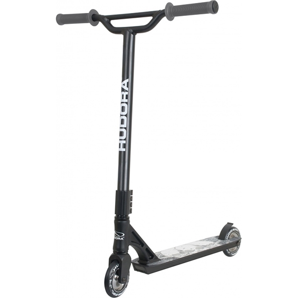 Также самокат Hudora Stunt Scooter XY-12 имеет широкий руль, который поворачивается на 360 градусов и позволяет пользователю отрабатывать самые смелые трюки. Дополнительную безопасность во время катания обеспечивают резиновые рукоятки, которые не выскальзывают из рук.