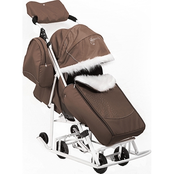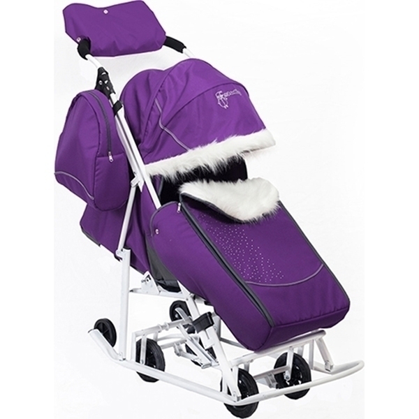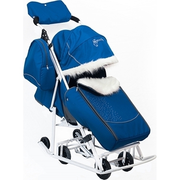 Особое внимание в этих санках заслуживают широкие полозья. Они легко едут по плотному или по рыхлому снегу, не позволяя транспортному средству провалиться под снег. Производитель не обошел тот факт, что в России рано темнеет в зимний сезон, поэтому коляска имеет светоотражающую окантовку.