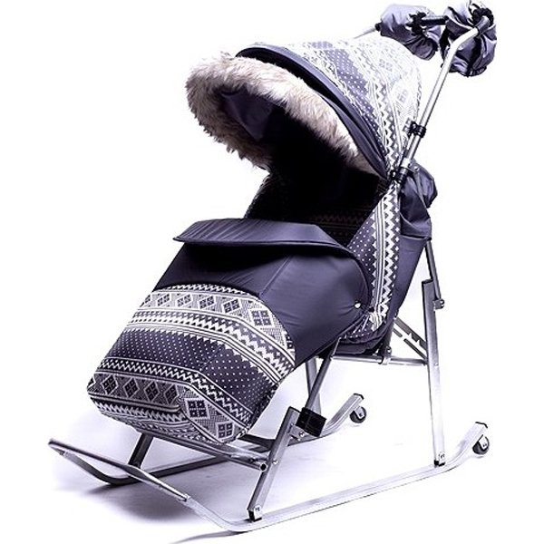 Идеальный вариант для тех родителей, которые хотят зимой продолжать длительные прогулки на свежем воздухе и при этом оставаться мобильными и везде успевать! За счет качественной и красивой водоотталкивающей обивки санки-коляска Kristy (Кристи) Luxe Premium Extra выглядит очень эффектно, а украшение мехом добавляет не только уютности, а еще и дополнительно удерживает тепло внутри. Обивка украшена рисунком с зимним орнаментом, который напоминает теплые бабушкины свитера. Спинка санок-коляски Kristy (Кристи) Luxe Premium Extra фиксируется в 4 позициях, что вместе с теплым конвертиком на натуральной овчине создает самые благоприятные условия для сладкого сна в морозную погоду. Дополнительную защиту от ветра и снега маленькому пассажиру обеспечивает глубокий капюшон, который опускается до самого низа. Дополнительное удобство для родителей санок-коляски Kristy (Кристи) Luxe Premium Extra обеспечивает перекидная ручка, таким образом Вы сможете держать малыша в поле зрения, а когда он подрастет и захочет изучать окружающий мир, Вы расположите блок «по ходу движения». Мамочек порадует рукавички-муфта на ручке и стильная сумочка в тон к колясочке, в которую поместятся все вещи, которые должны быть всегда под рукой.