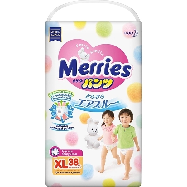 Трусики-подгузники для детей Merries XL, 12-22 кг, 38 штук