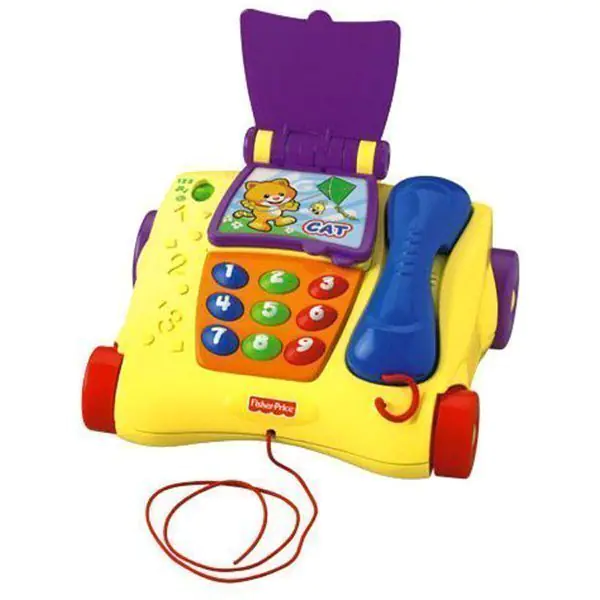 Ученый телефон Fisher-Price FP T5258 Смейся и Учись — полезная игрушка для деток старше полугода, которая научит их первым словам, цифрам и счету, а также будет веселить забавными песенками и стишками. Корпус украшен рельефными геометрическими фигурами и книжкой с листающимися страничками. Трубка снимается, поэтому это именно та игрушка, которая создана для ролевой игры. В ученом телефоне Фишер Прайс Смейся и Учись рус./англ. живут четыре животных: кошка, щенок, утка и поросенок. Названия животных написаны на двух языках. Малыш смотрит на домашних питомцев, запоминает их названия и слушает, как они разговаривают. Телефон Fisher-Price FP T5258 работает в трех режимах и имеет регулятор громкости. Разноцветные кнопки с цифрами помогают выучить цвета и числа. Кроме того, игрушку можно использовать в качестве каталки.