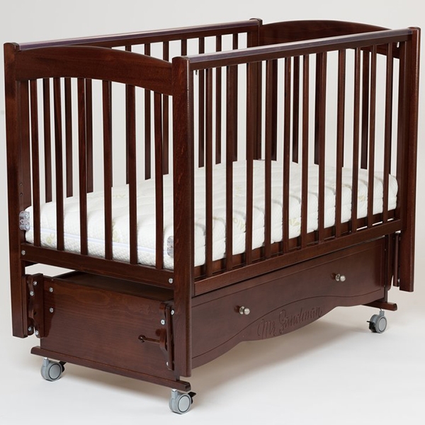 Боковой борт регулируется по высоте и фиксируется в двух положениях. Большой ящик с плавным механизмом закрывания позволяет держать под рукой детские пижамы и спальные принадлежности.